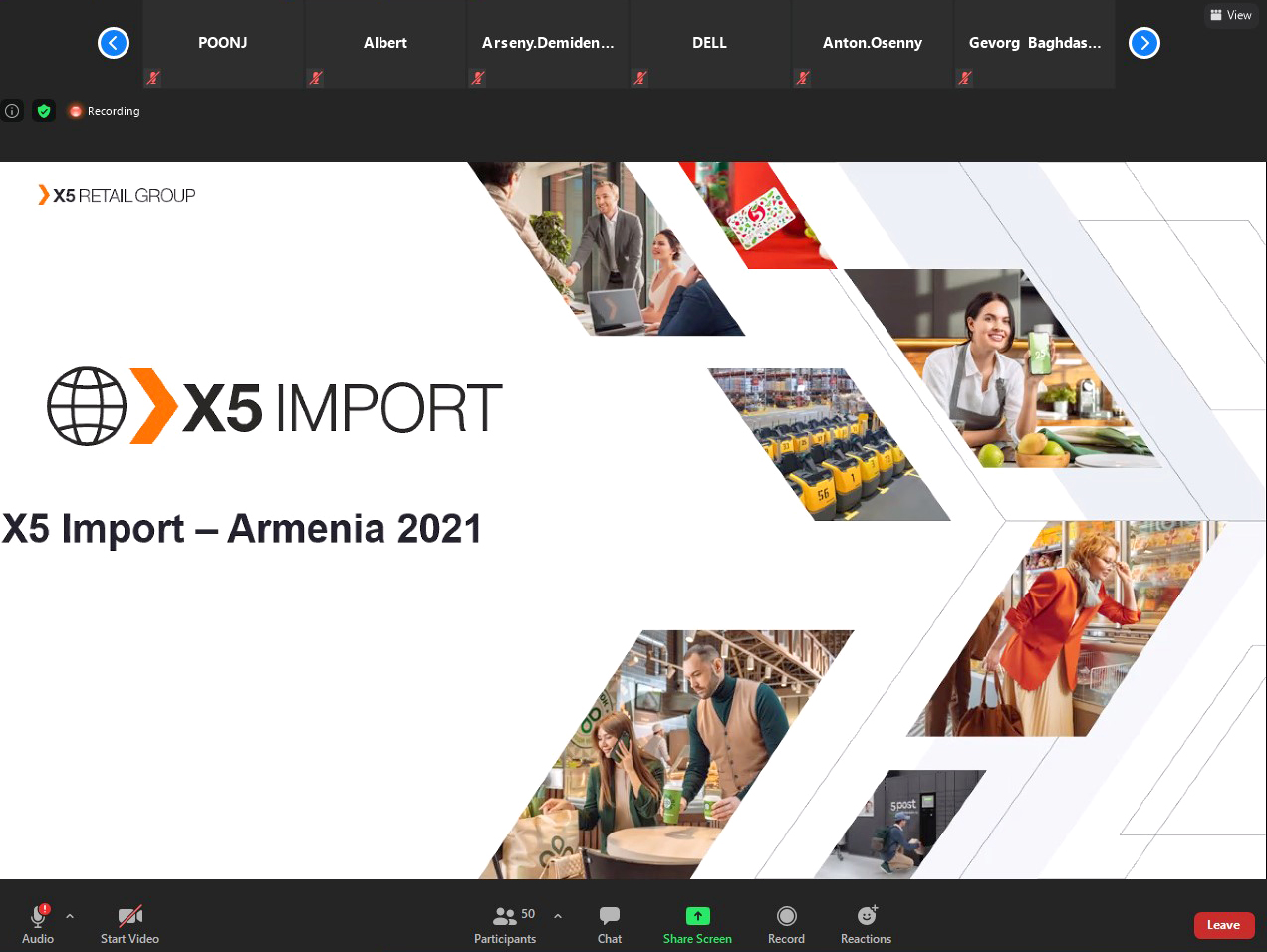 Փետրվարի 19-ին ՀՀ էկոնոմիկայի նախարարի տեղակալ Արման Խոջոյանի նախաձեռնությամբ Ներդրումների աջակցման կենտրոնի հետ համատեղ կազմակերպվել է առցանց հանդիպում դեպի ռուսաստանյան շուկա հայկական սննդամթերքի արտահանումների ընդլայնման և սննդամթերքի մանրածախ X5 Retail Group ռուսաստանյան ընկերությունում հայկական արտադրանքի ներկայացվածության ավելացման հնարավորությունը քննարկելու նպատակով։ Հանդիպմանը մասնակցել են նաև Հայաստանում ՌԴ առևտրային ներկայացուցիչ Աննա Դոնչենկոն, ավելի քան 40 հայկական ընկերությունների ներկայացուցիչներ։